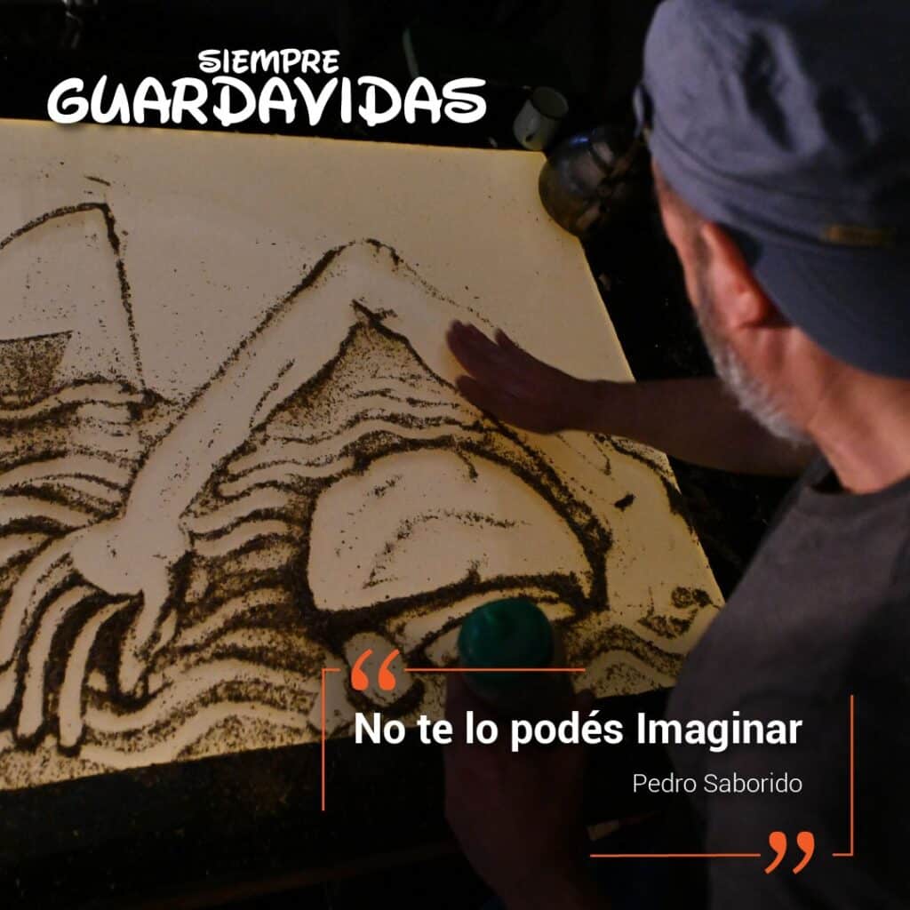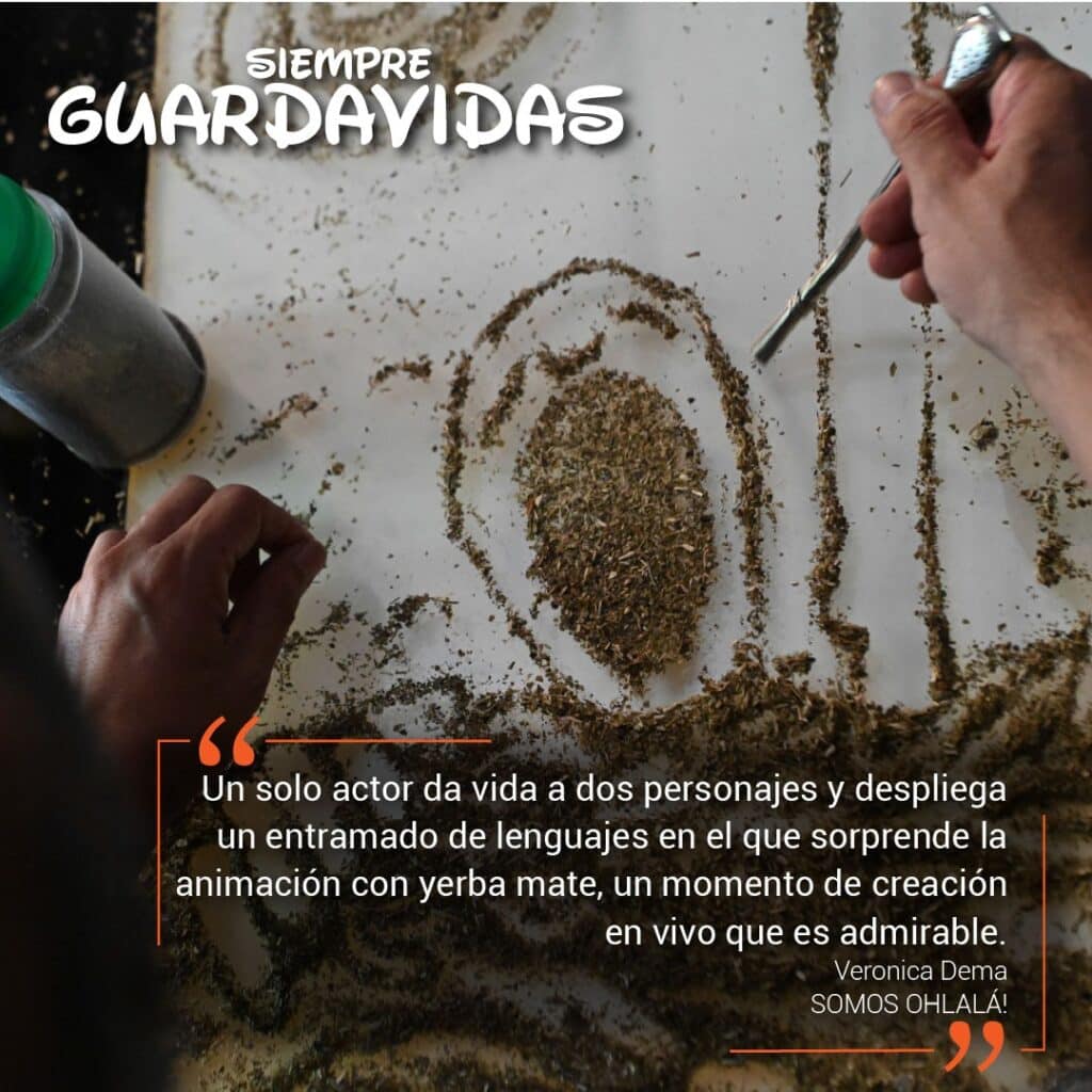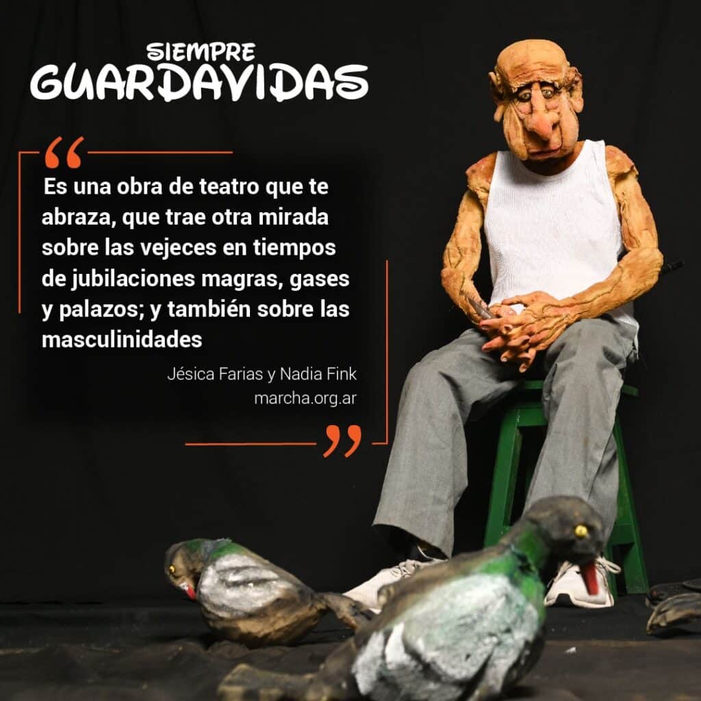 “SIEMPRE GUARDAVIDAS” não permite a indiferença, te fará sentir que a mão do titiritero ingressa a teu corpo, toma teu coração e, apertando-o, a cada vez um pouco mais forte, a cada vez um pouco mais ligeiro, marca o compás do músculo vital, durante um tempo que excede o tempo da obra, como se a gente fosse capaz de se levar ao titiritero posto, ou ao menos a uma parte, a sua mão, que vem a ser como seu próprio coração